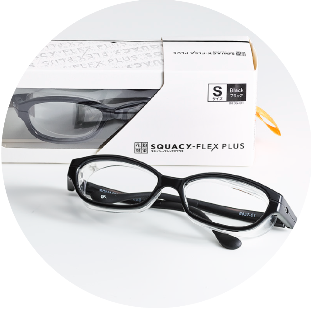 花粉対策メガネ「スカッシー®︎」のポイントは、次の3つです。