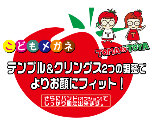 哺乳瓶と同じ軽くて安心な素材。お子様の小さい顔にもしなやかにフィットするデザインで、細かなサイズ調整にも対応トマトグラッシーズは、お子様の元気でイキイキとした成長を願って開発した子供専用メガネです。