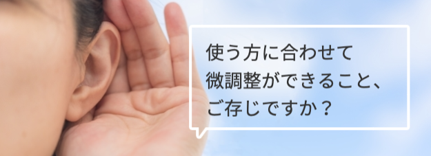 聴力に合わせて聞き取りにくい音域を集中的に聞こえるように、ご本人に合わせて調整、カスタマイズできます。会話などの話し声をよく聞こえるようにするために最適です。